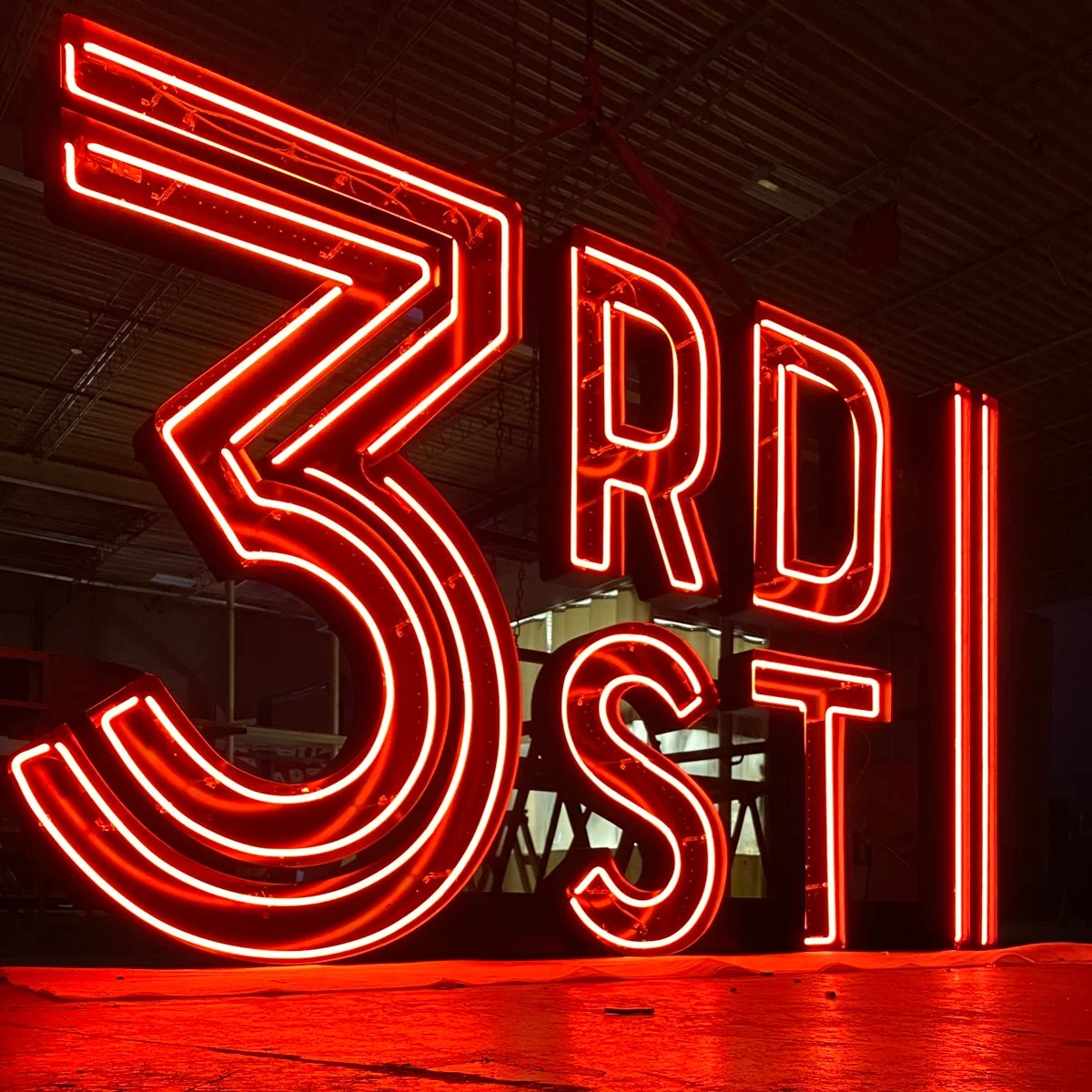 This project was a perfect fit for our skillset, which includes technical aluminum and steel fabrication, hand lettering, vinyl application, neon, LED, high rise crane work, complex planning and coordination, as well as excellent communication and management. We are proud to have been able to leverage all of these capabilities to deliver exceptional results.